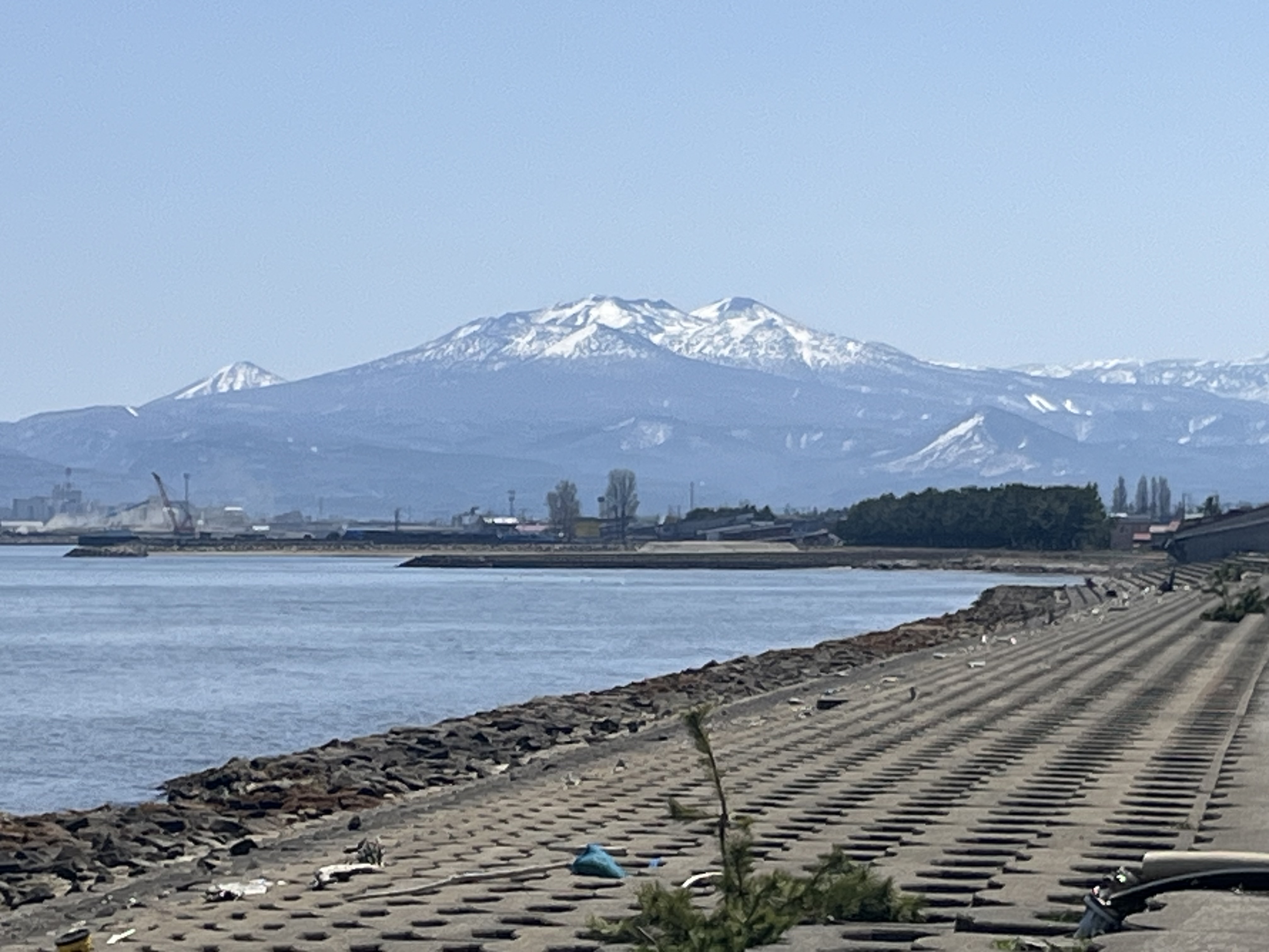 春の陽射しを受けて、快適な朝です。 日に日に薄化粧になる八甲田連山を眺めながらも 早朝は放射冷却現象で毛嵐が観られた海上は想像出かねるくらいです。