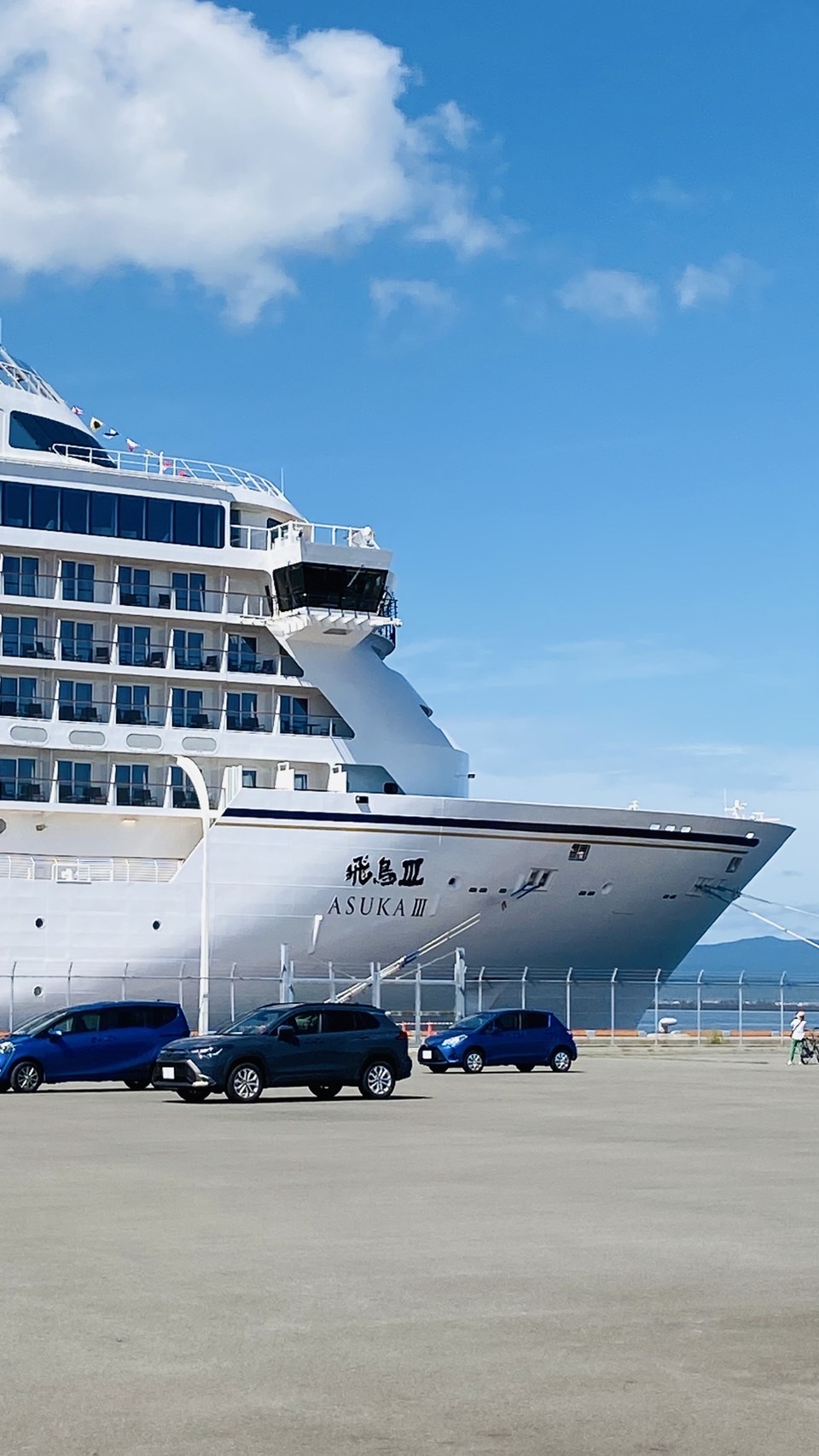 12:32 安方地区の岸壁には飛鳥Ⅲの豪華客船が停留していて、吸い寄せられるように寄って行けば、乗船できない代わりに写真だけ撮らせていただきます。