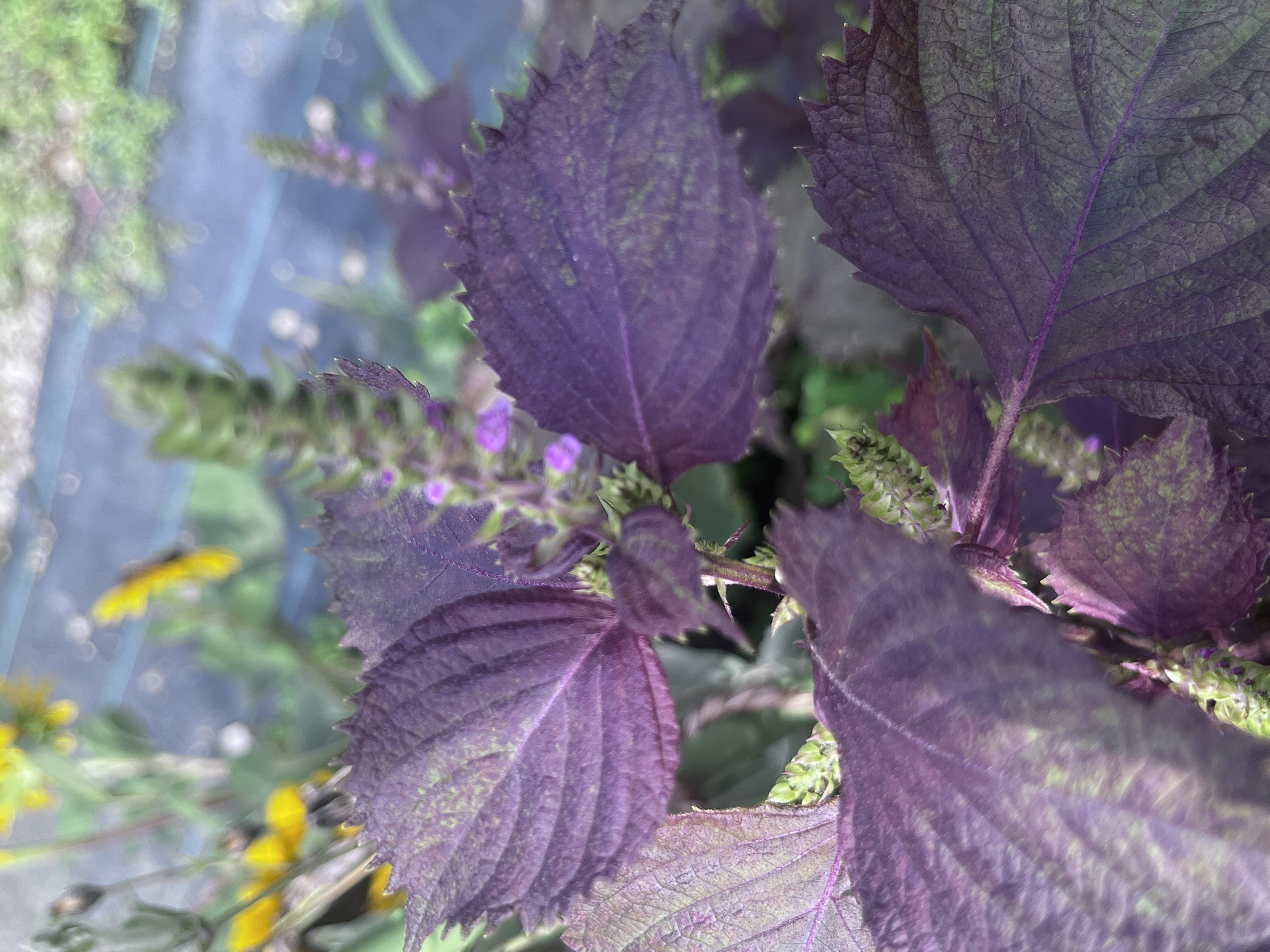 赤シソは🌸を付け始め間もなく種を育み。一足早く来年の準備に入るんです。 焦るな自分!