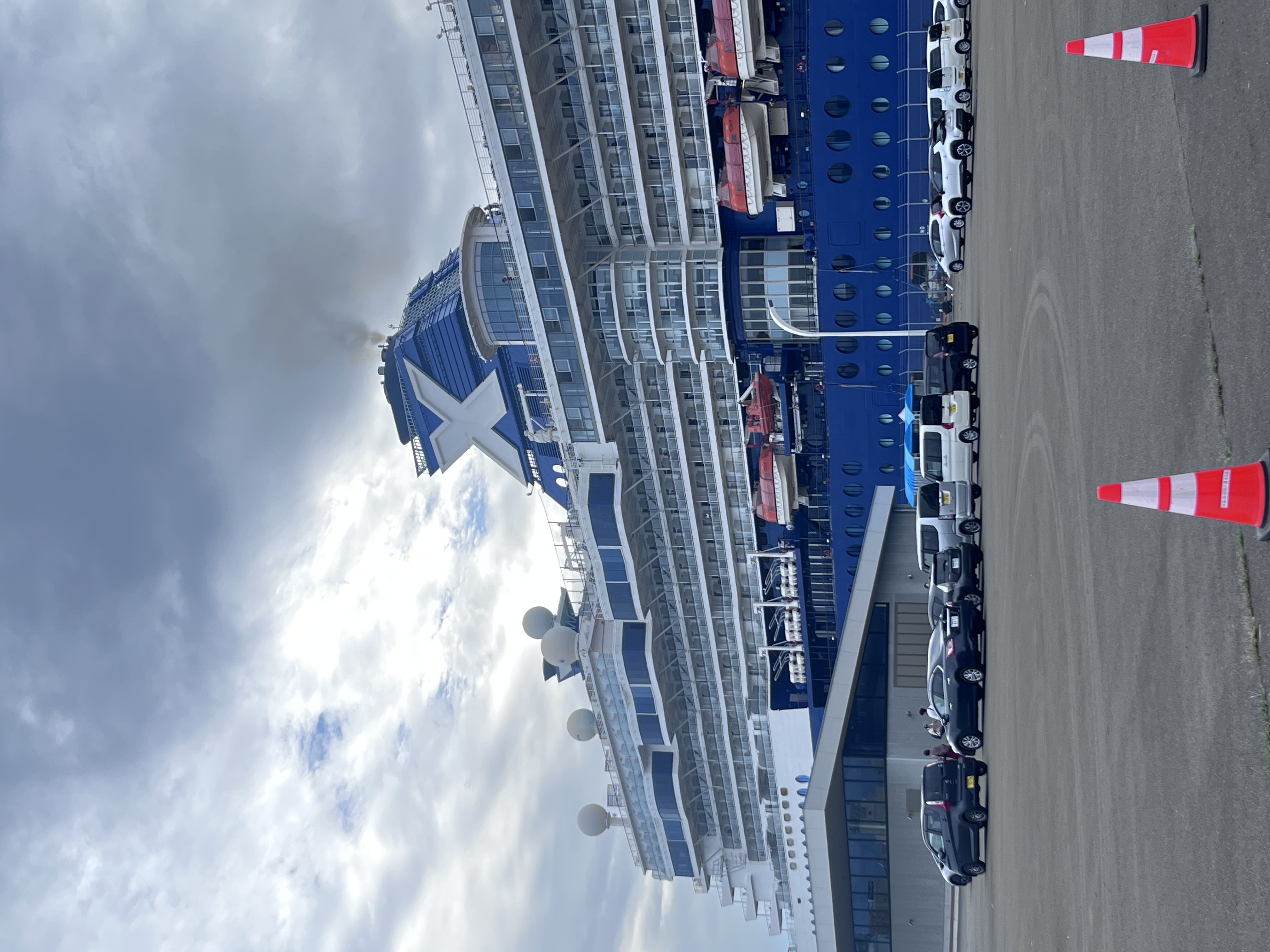 15:04 安方の岸壁には昨日とはまるで見た目から違う豪華客船が接岸していますが、あまりに目につく大きさに写真撮り来られる人が絶えないくらいです。