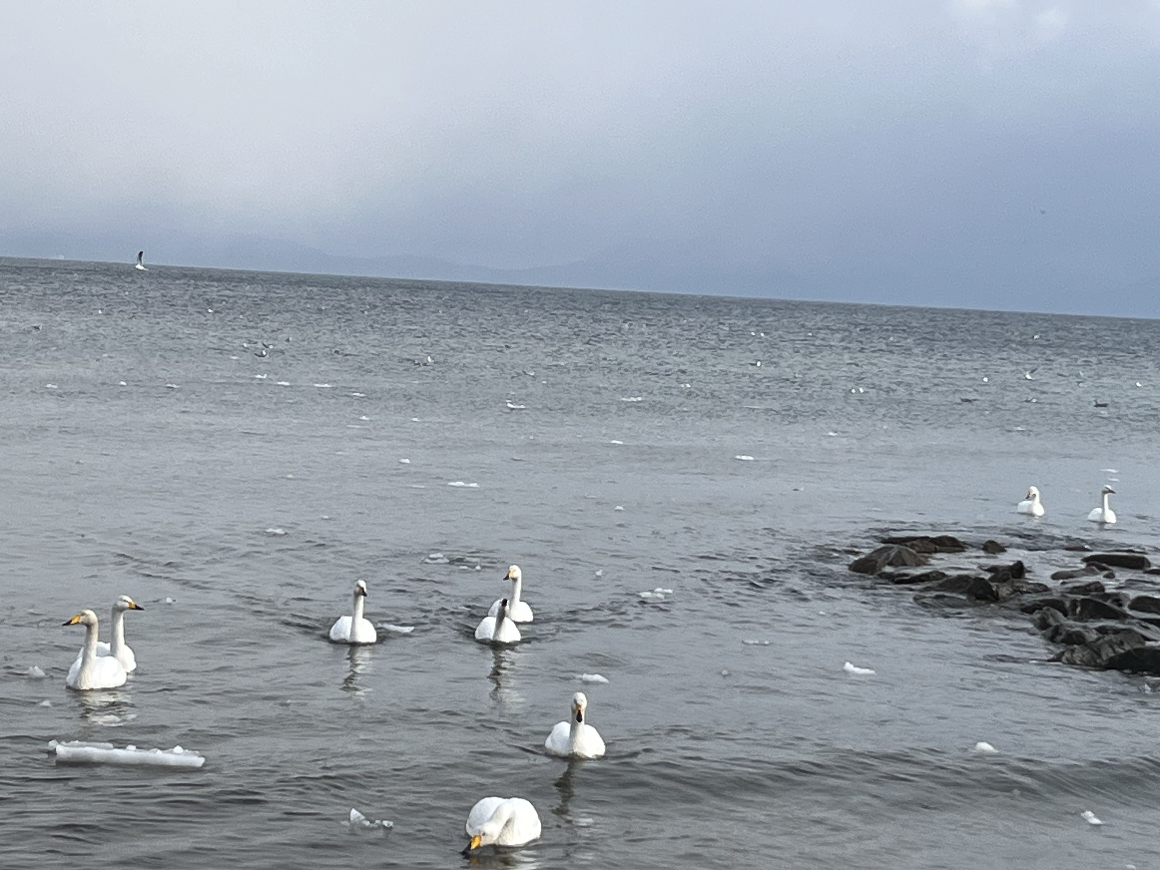 12:22天田内川に架かる最終の橋「はまの橋」から白鳥の集いが見られます。