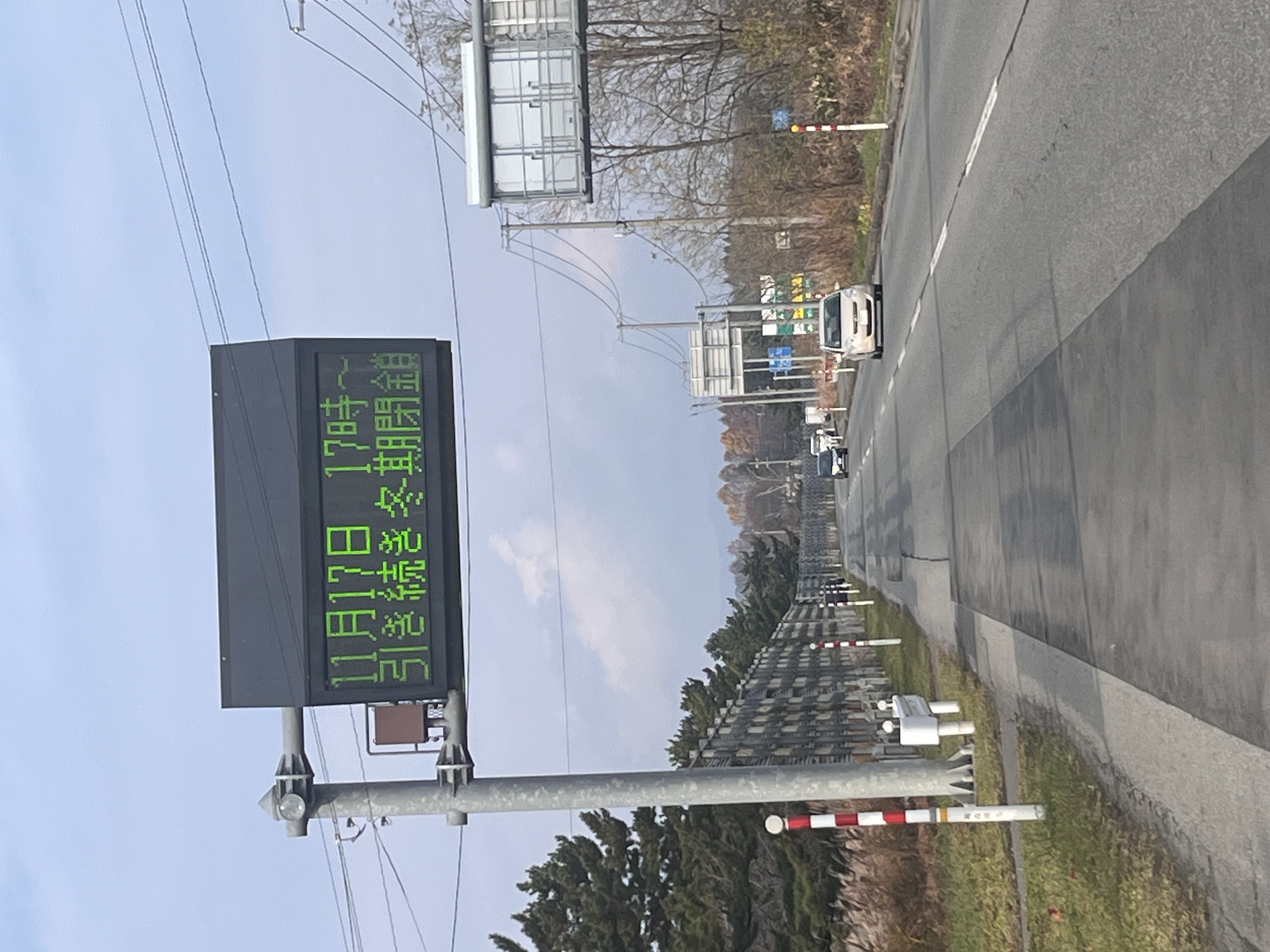 11:32 国道280号線油川バイパス上の電光掲示には五所川原線(あすなろライン)は冬季間閉鎖の案内がでています。