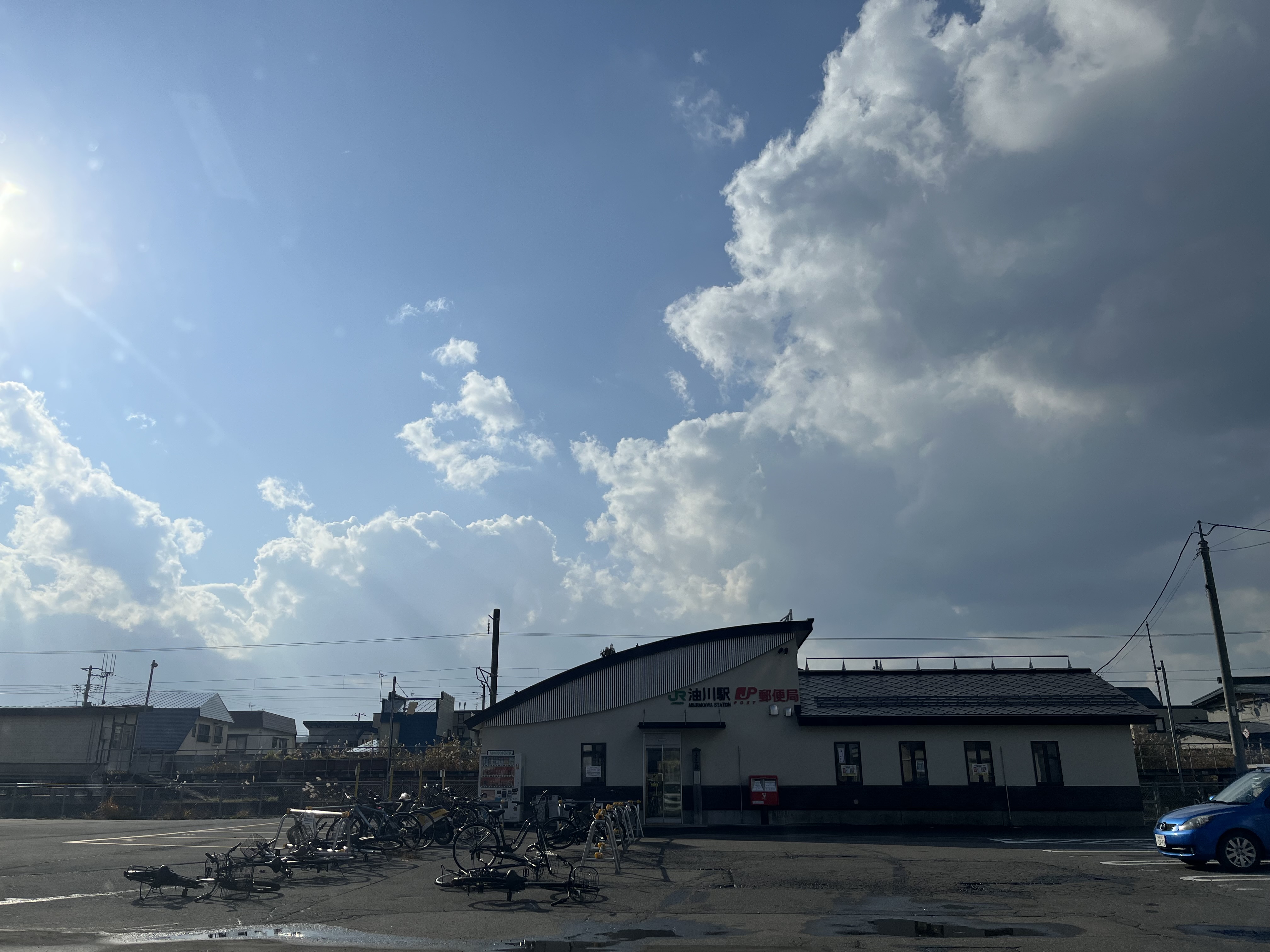 雨混じりの天気もあって、まもなく最も利用客数としては多い青森北高校生が期末考査を終えてやって来ると思われるJR津軽線油川駅➕JP油川郵便局です。