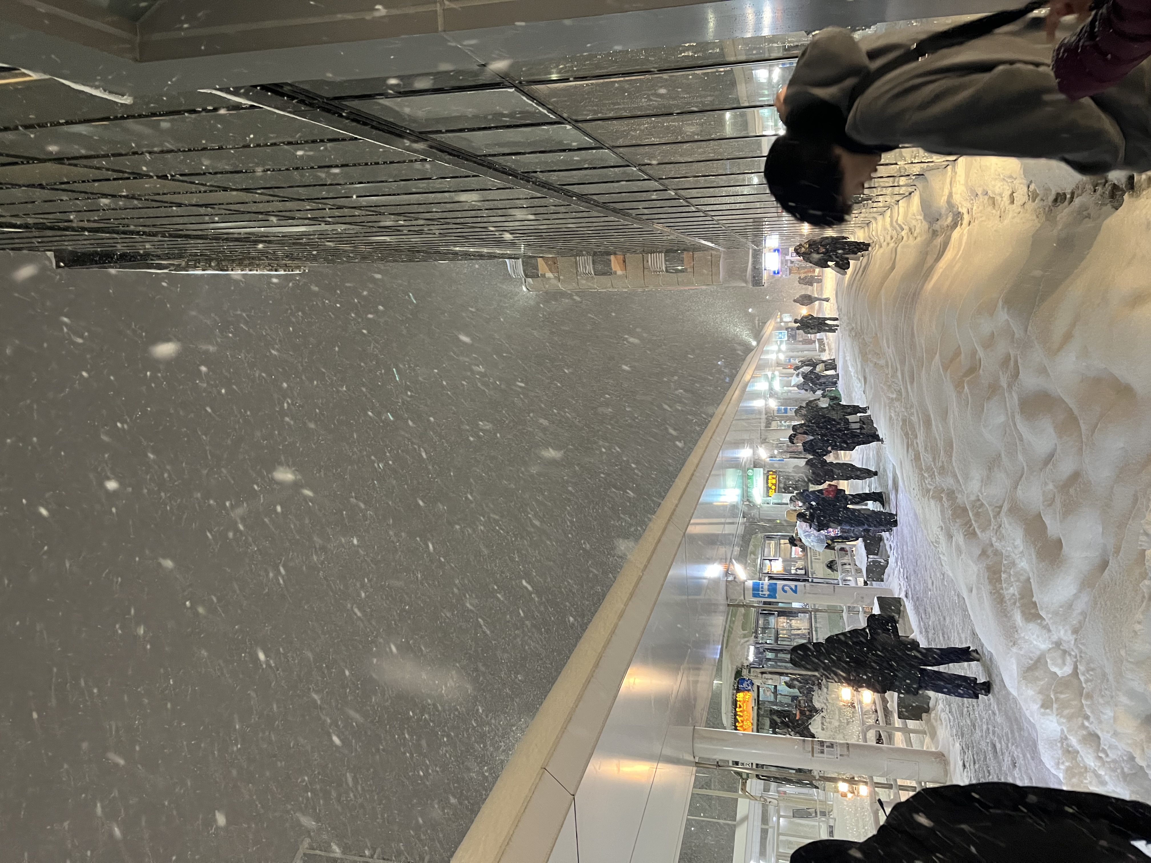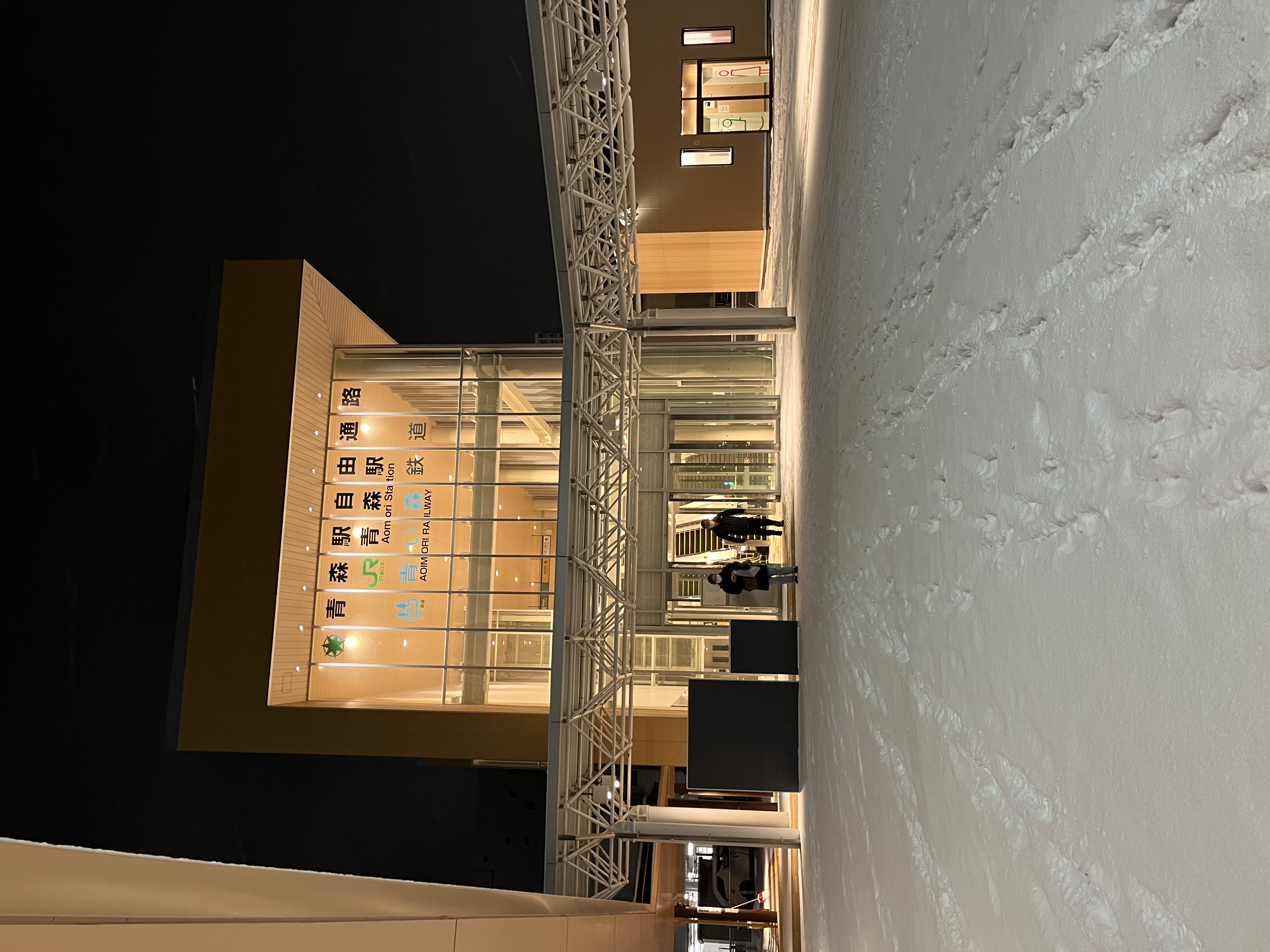18:09 青森駅東口の雪が障害物になっていますが、原色系の防寒具を着た人の数は多く、しかもはしゃいでいるようにも見えます。 帰宅後に今日3度目の雪片付け。