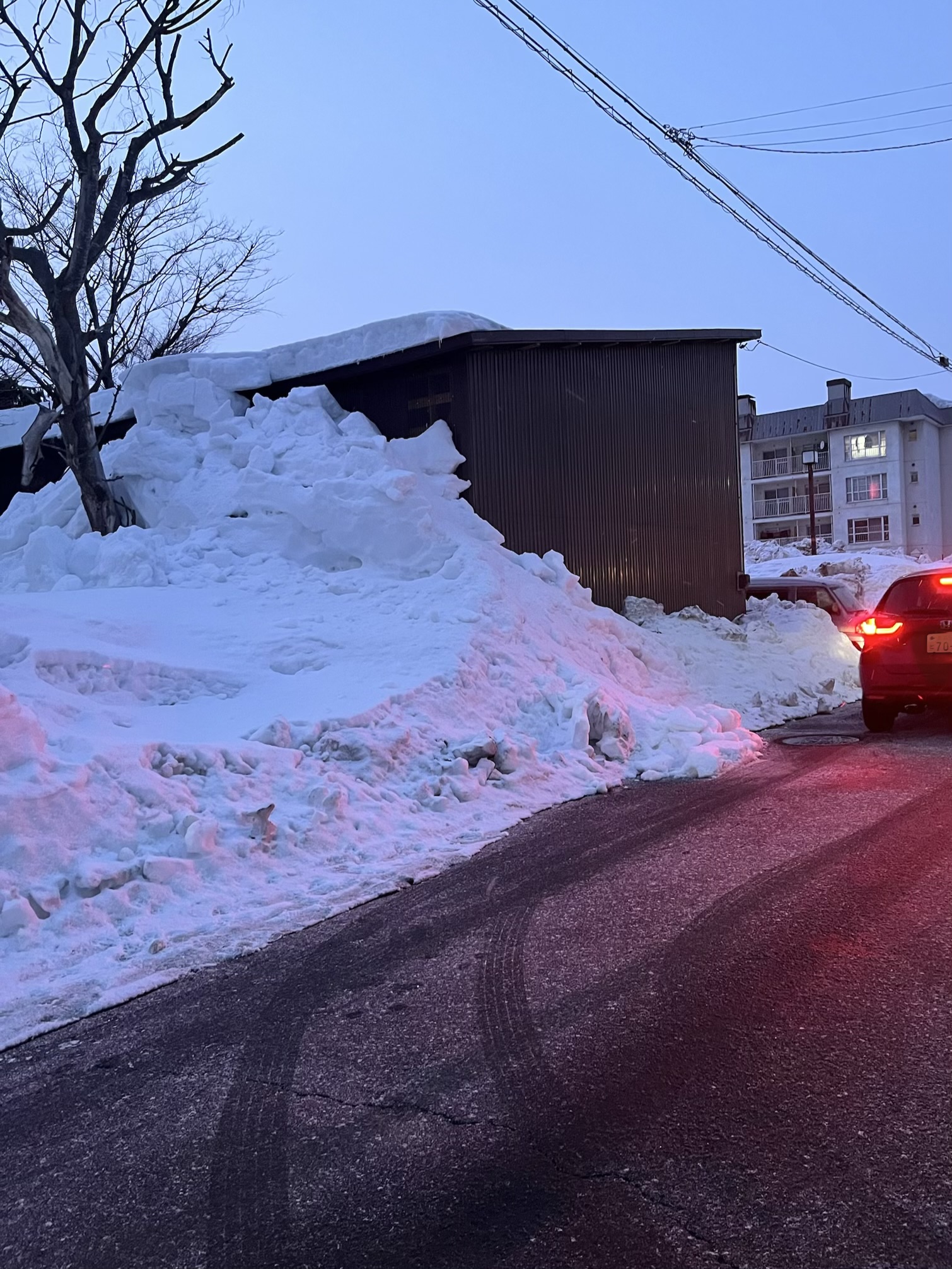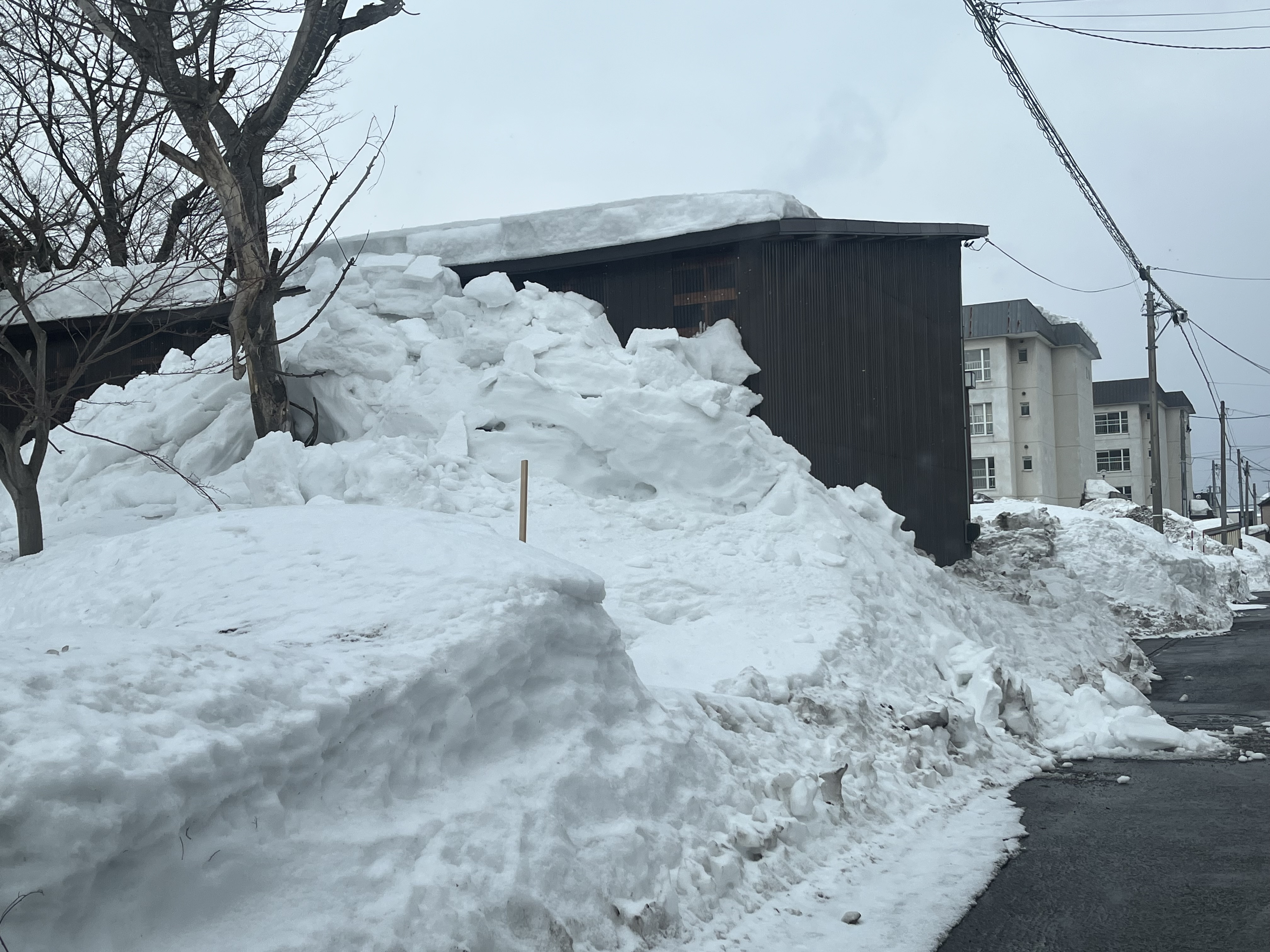 今日の最高気温になる頃、屋根雪が落ちそうで落ちない(例の屋根雪)が落雪していて、太陽光に感謝したものです。