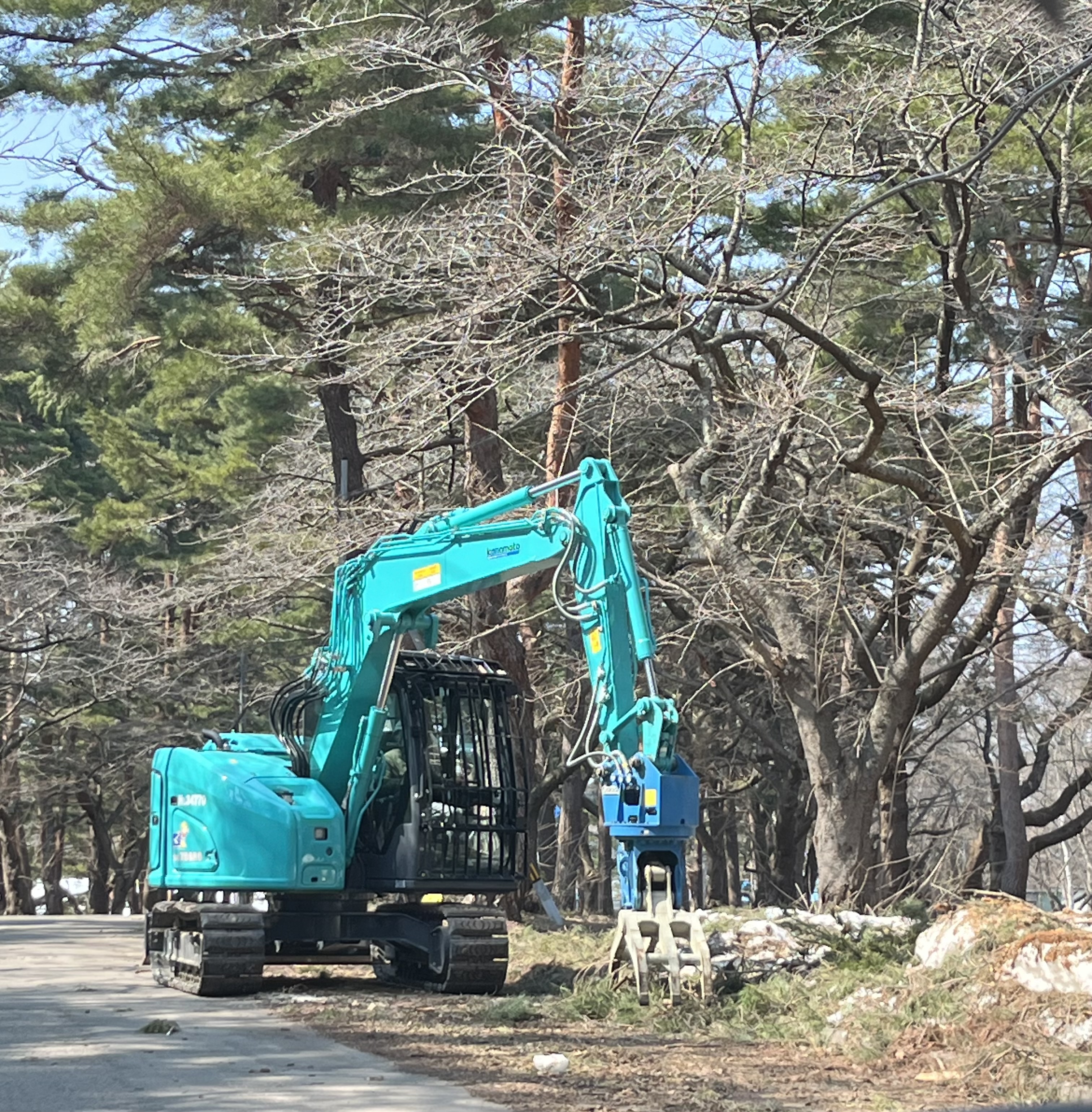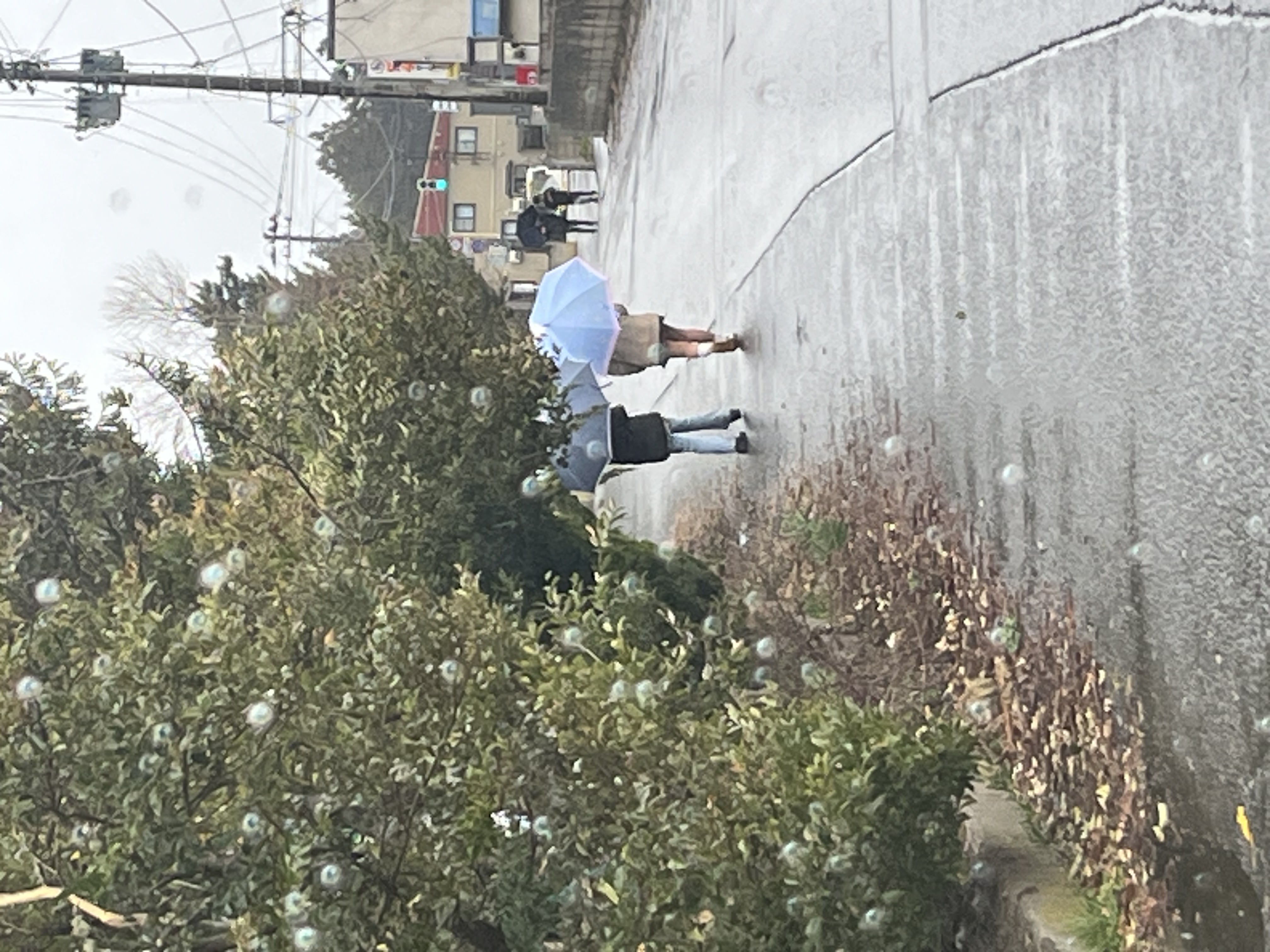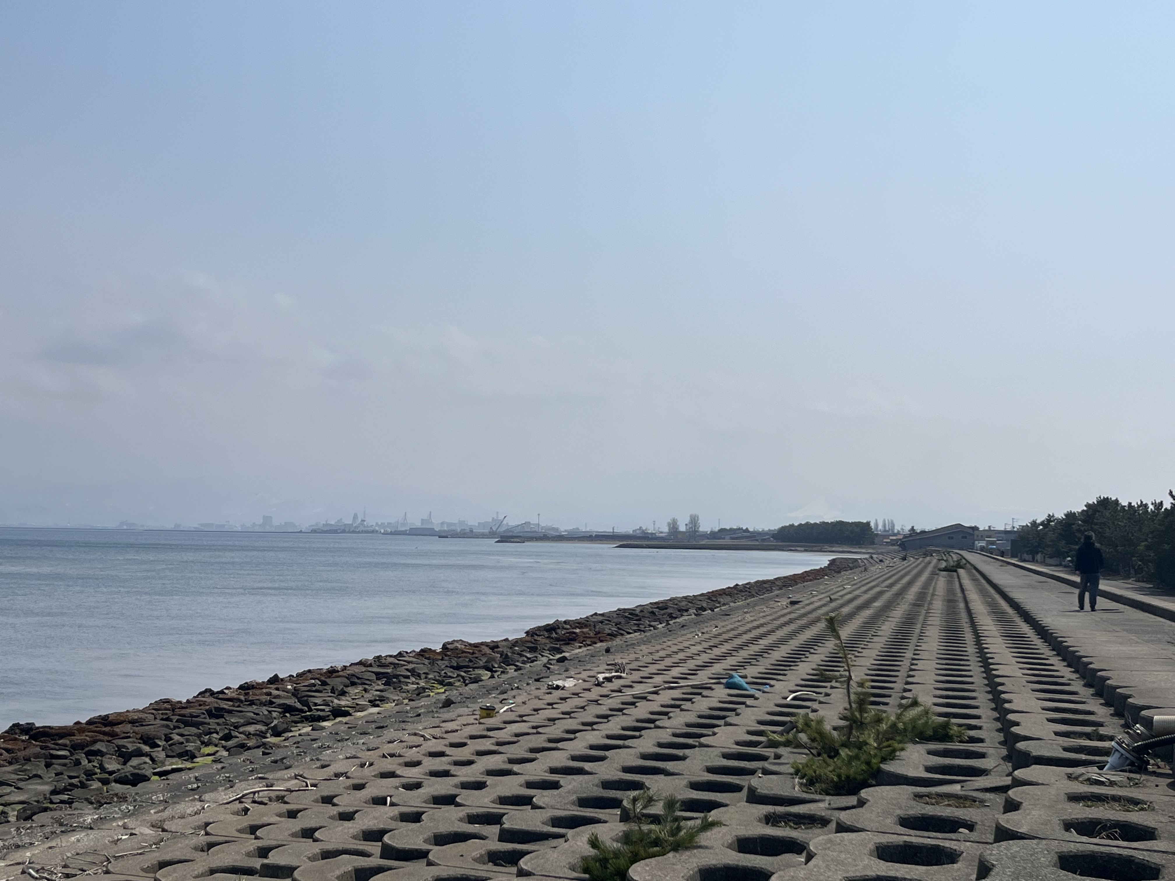 西田沢浜田地区海岸では八甲田連山が濃霧でまるで見えませんでしたが、吹っ切るような勢いで堤防上を散歩する健康人がいて、自分も健康体の時に気が付いて散歩していたならと反省・後悔が走ります。