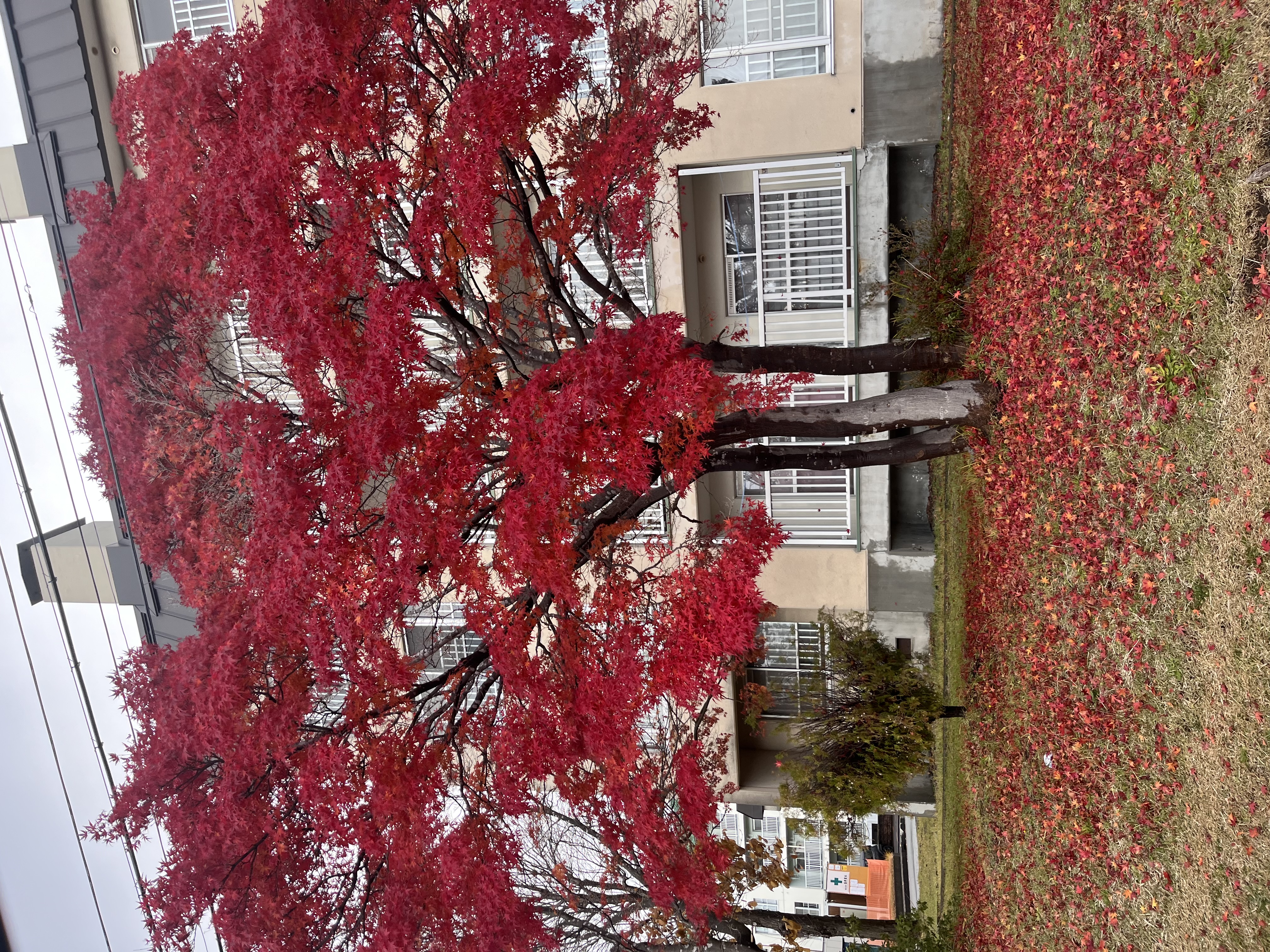 11:39 野木和団地内に堂々と咲くカエデの木と 落ち葉が絵になるほど目立ちます。 長い期間外装工事がされていたシートがはがされつつあり、住民も見る側もかなりさっぱりして見られます。