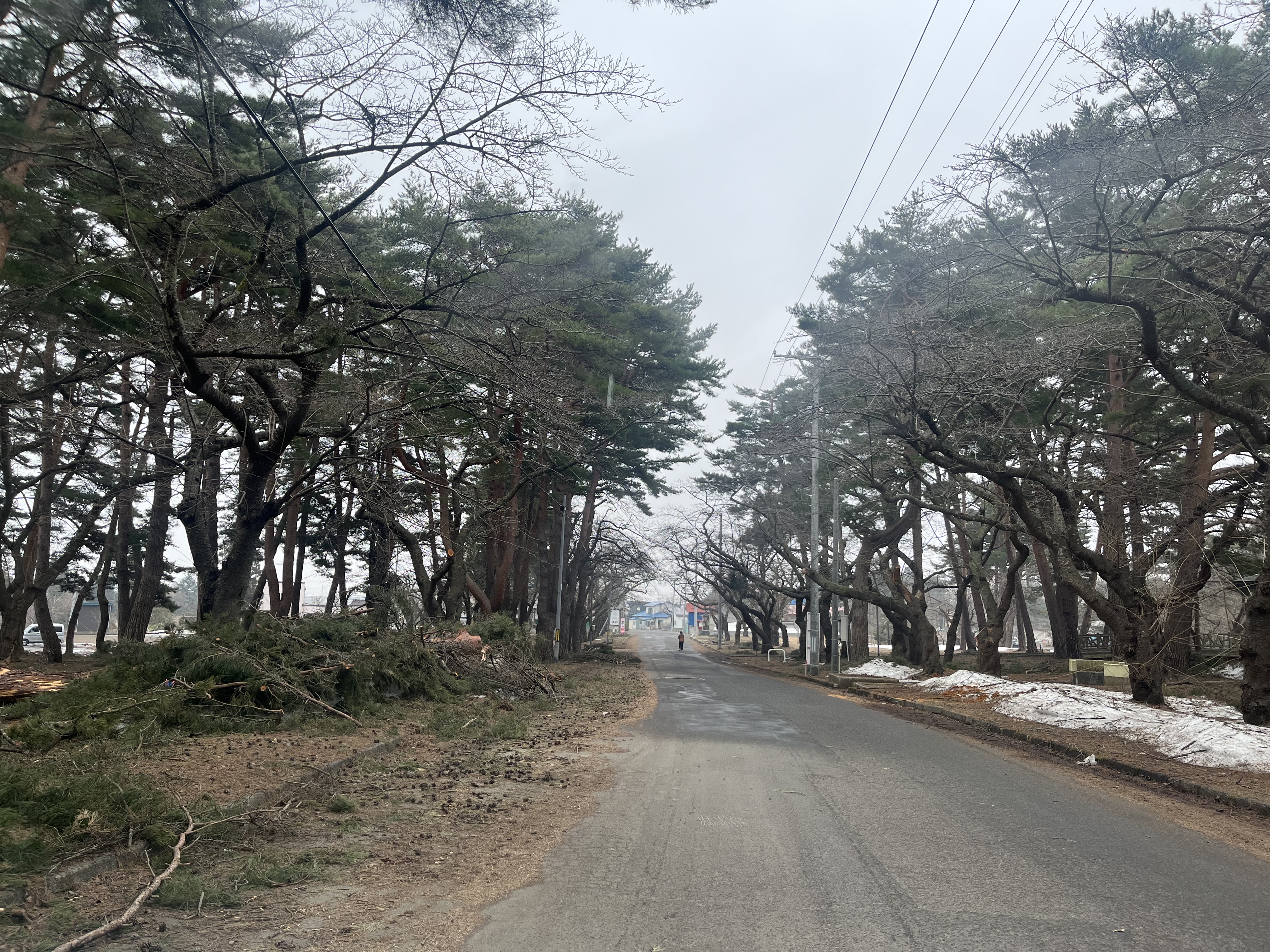 昼近くでも濃霧は晴れず、遠く山々は全く見えません。 11:04 野木和公園内メインストリート沿いには枝木ッ葉・一般ごみなどが散らばり、見た目だけでもやりがいがある量でした。