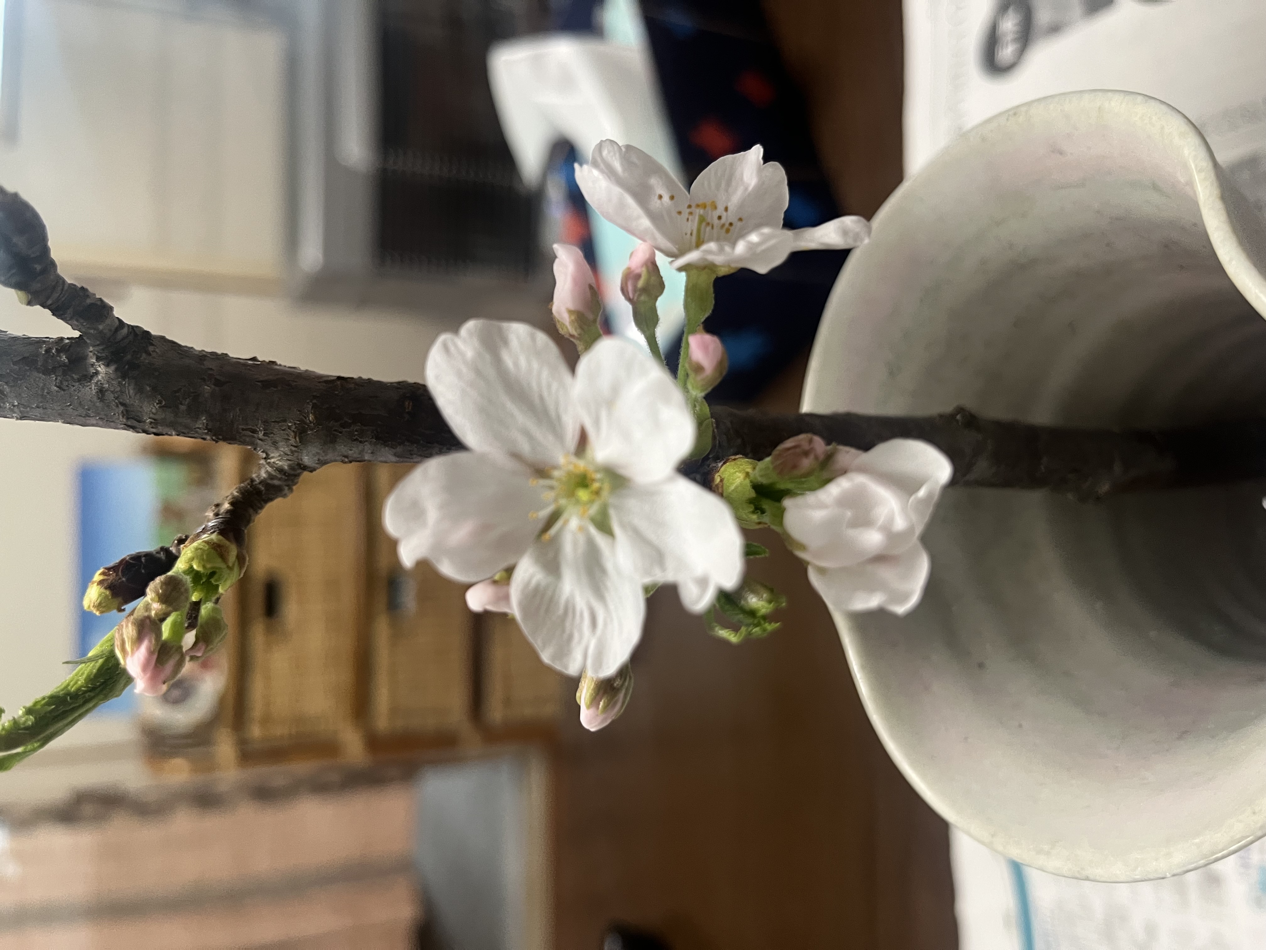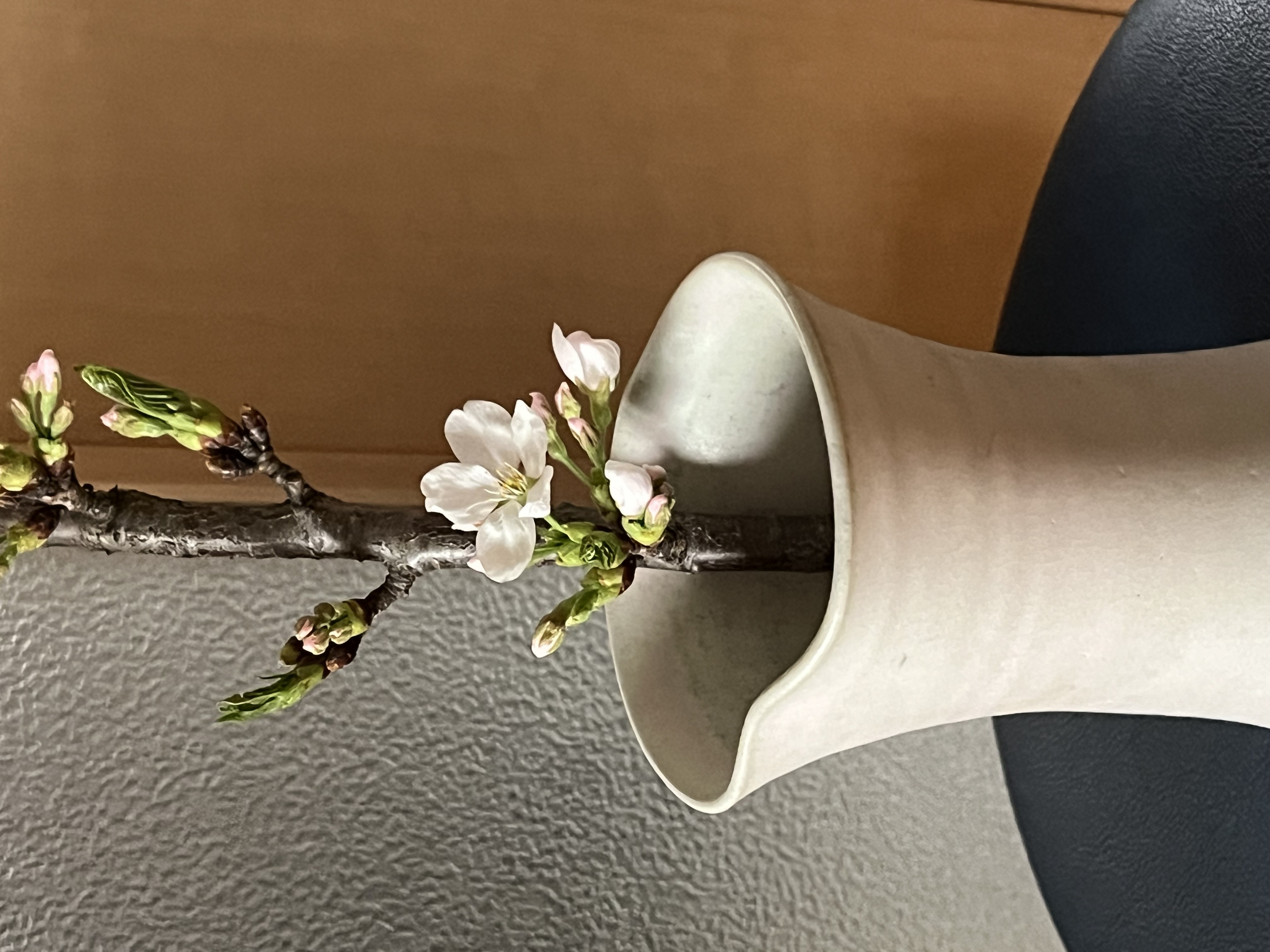 今朝は我が家で水に差していた桜枝は更に2輪咲くほど穏やかな天気です。