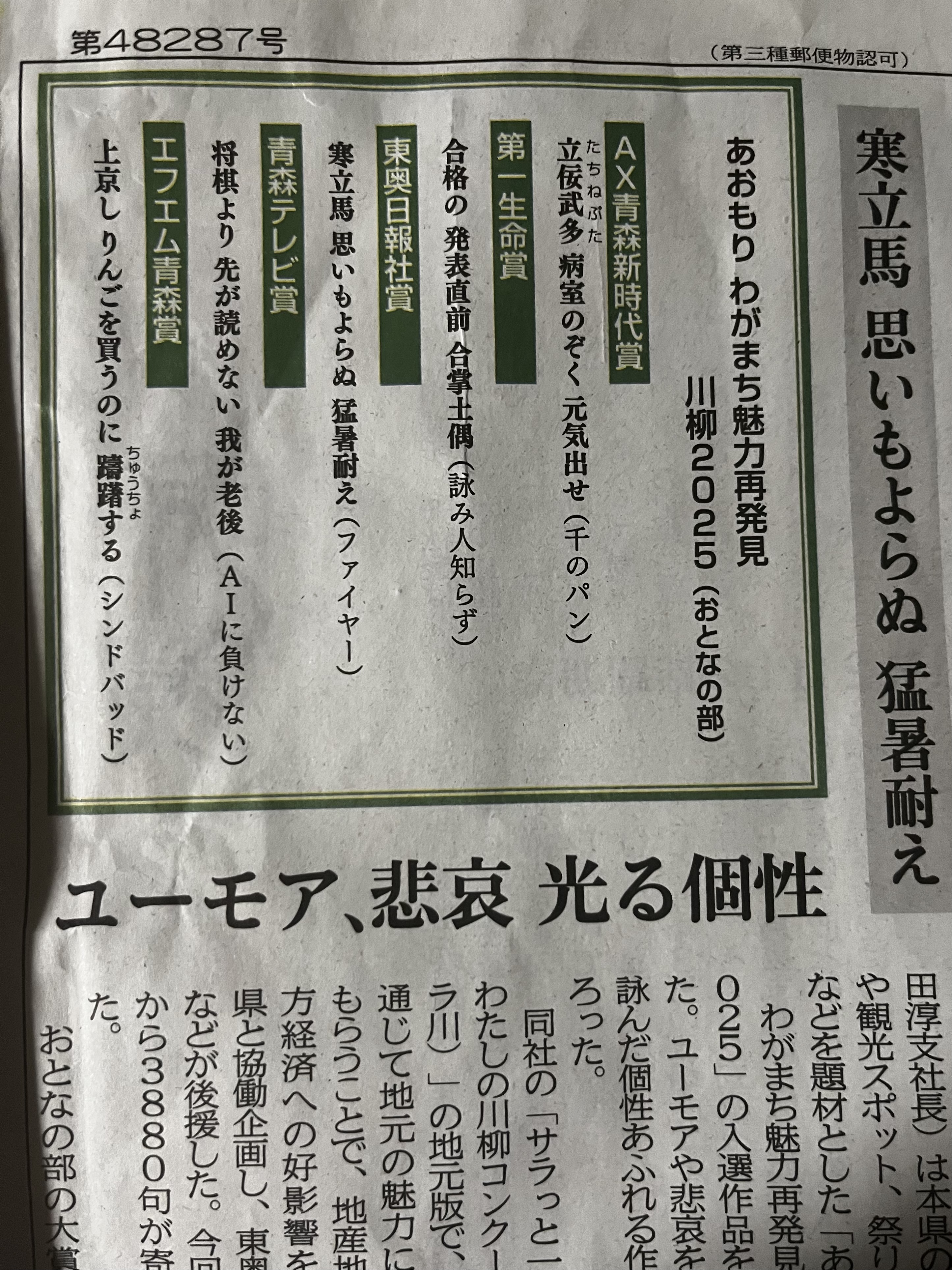 15:25 西バイパス路線を目前にして、ラジオからは凍結注意報が出るなど、注意報の種類は増えるばかりですね。 #アスパム前で例年行われていた、クリスマスマーケットは北海道・三陸沖後発地震注意報を受けて開始日を1週間引き延ばすそうです。 #今年の世相を1文字では〔熊)だそうです🐻。